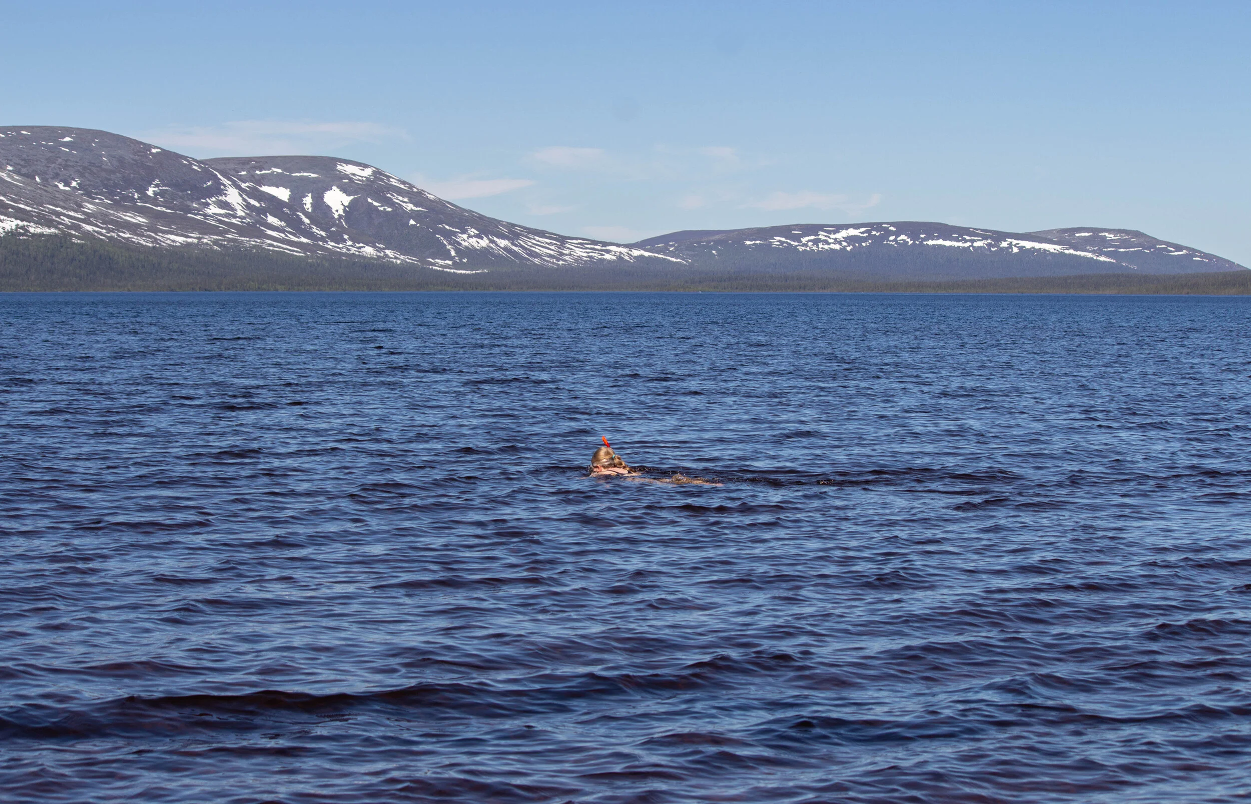 Pallasjärvi, jossa Jonna kävi jälleen snorklaamassa. Punaisella hiekalla oli jo nyt tavallista enemmän porukkaa, ja paikkaa on mainostettu ihan Helsingin Sanomissa asti, joten tänä kesänä tungosta on varmasti.