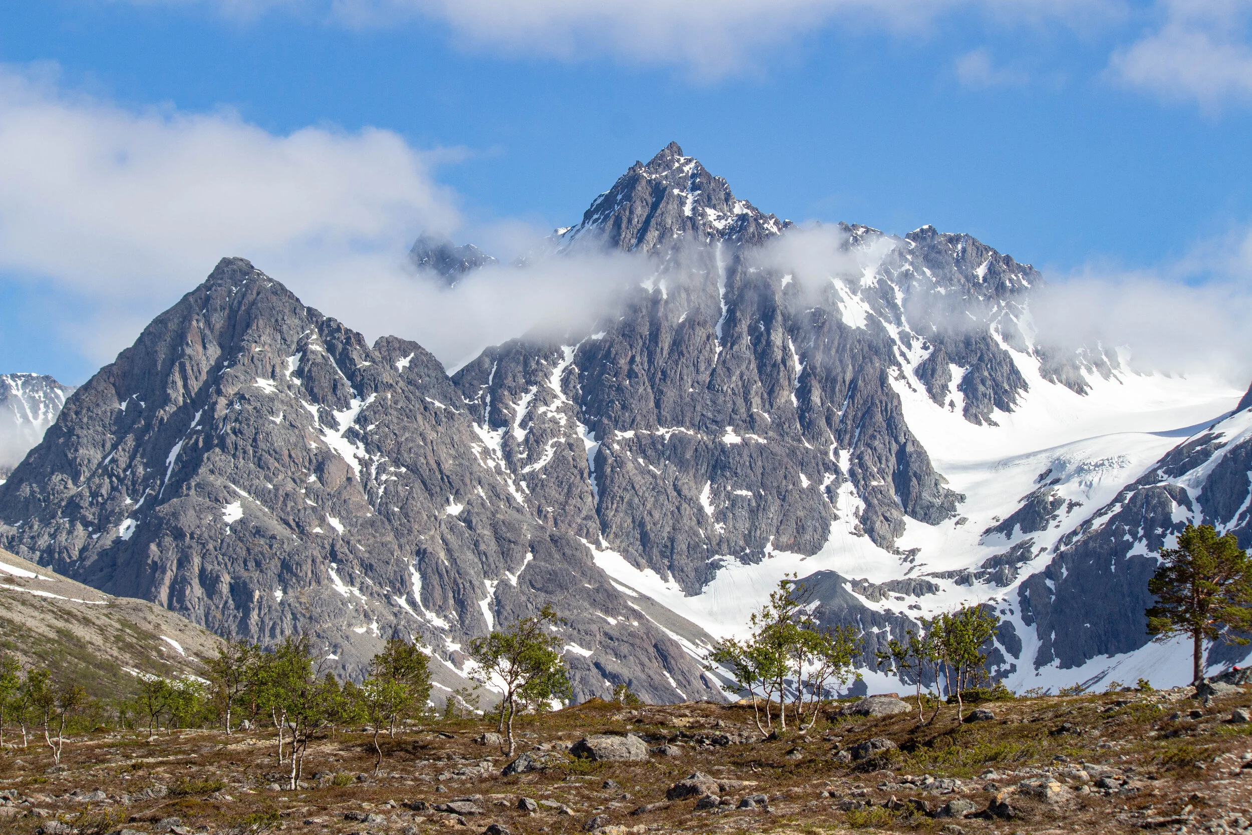 Loputtoman pitkältä tuntuneen kevättalven jälkeen saapui kesä kuumana Lappiinkin. Vaikka en yleensä helteestä juuri välitäkään, kahdeksan kuukauden lumisen kauden jälkeen hellejaksosta osaa yllättäen taas nauttia. On myös hassua retkeillä sortseissa vaikka tunturissa on vielä paikoitellen lunta.