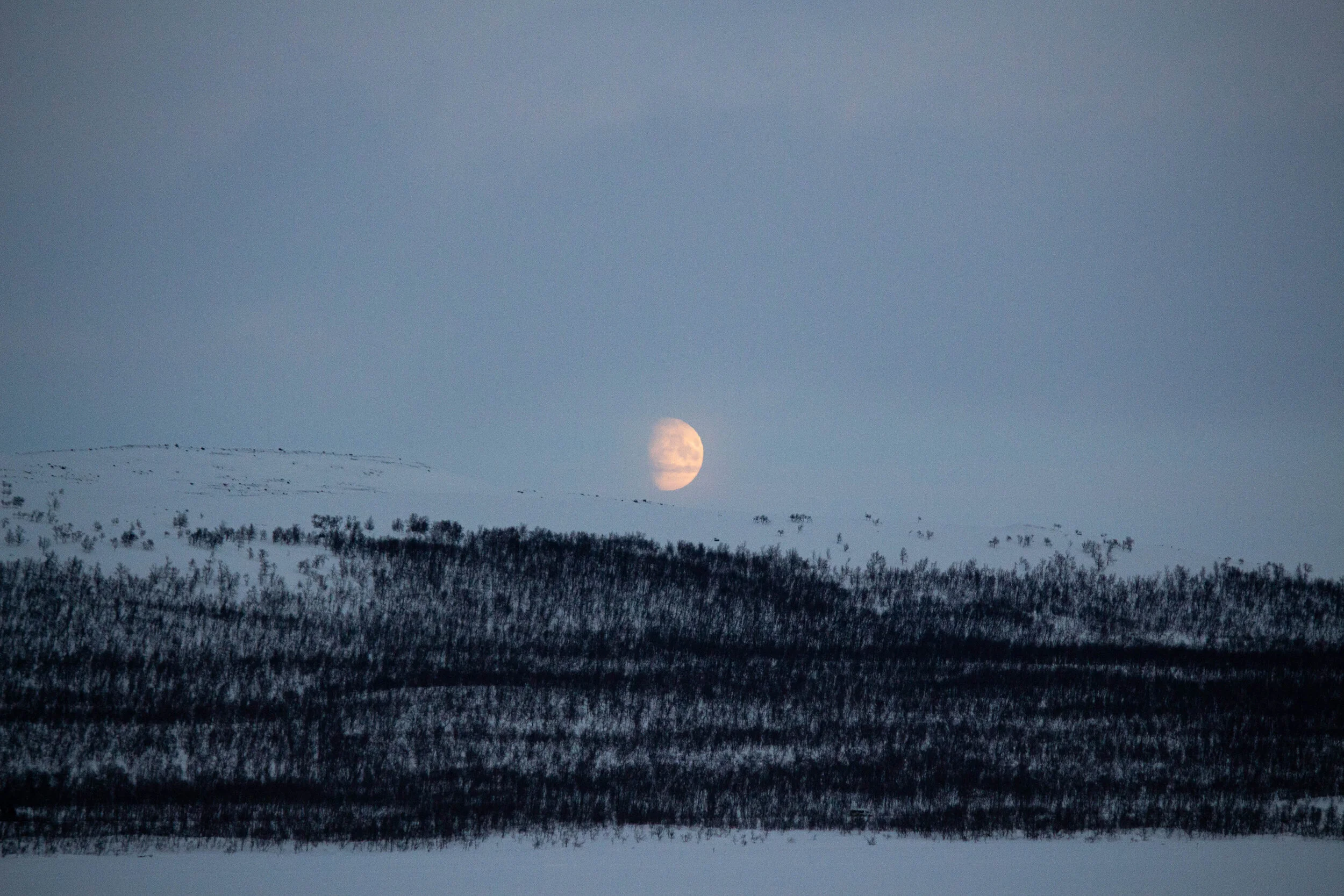 Kirkkaina vuorokausina kaamos oli henkeäsalpaavan kaunis pastelliväreineen, helmiäispilvineen, revontulineen, tähtitaivaineen ja kuutamoöineen. Värimaailma taivaalla eli jatkuvasti omaa elämäänsä. Eräänä lähes täyden kuun yönä satuin heräämään keskellä yötä ja ulkona oli yhtä valoisaa kuin hämäränä talvipäivänä, sillä koko kylällä oli sähkökatkos eikä keinovaloa kajastanut mistään. Ainoastaan kuunvalo heijasti hangen kautta luoden maagisen utuisen tunnelman nukkuvan kylän ylle.
