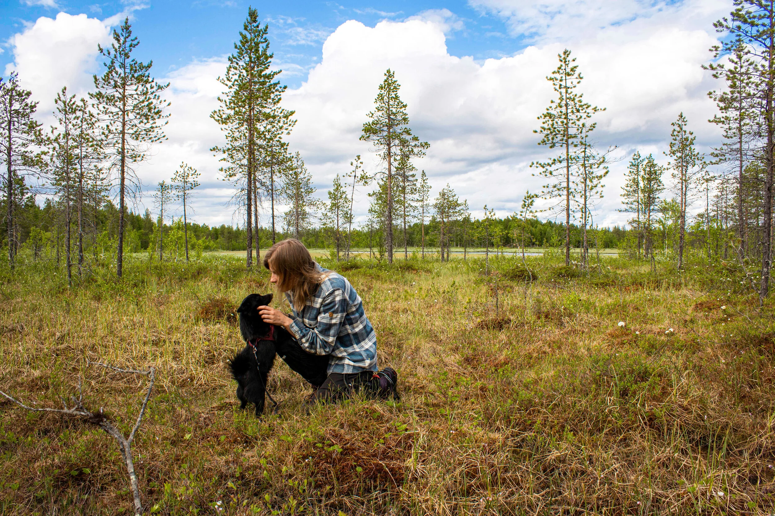 Palattuamme pohjoiseen nautimme Muron kanssa kesän alkamisesta uudelleen täällä: sateen jälkeisen metsän tuoksusta, kosteista jängistä, kirkasvetisistä järvistä, yöttömien öiden pehmeästä valosta, käkien kukkumisesta ja koivunlehtien havinasta kovassa tuulessa. Sääskistä me emme niin välitä, mutta nekin kuuluvat pohjoisen kesään ja niiden kanssa oppii elämään kun on pakko.