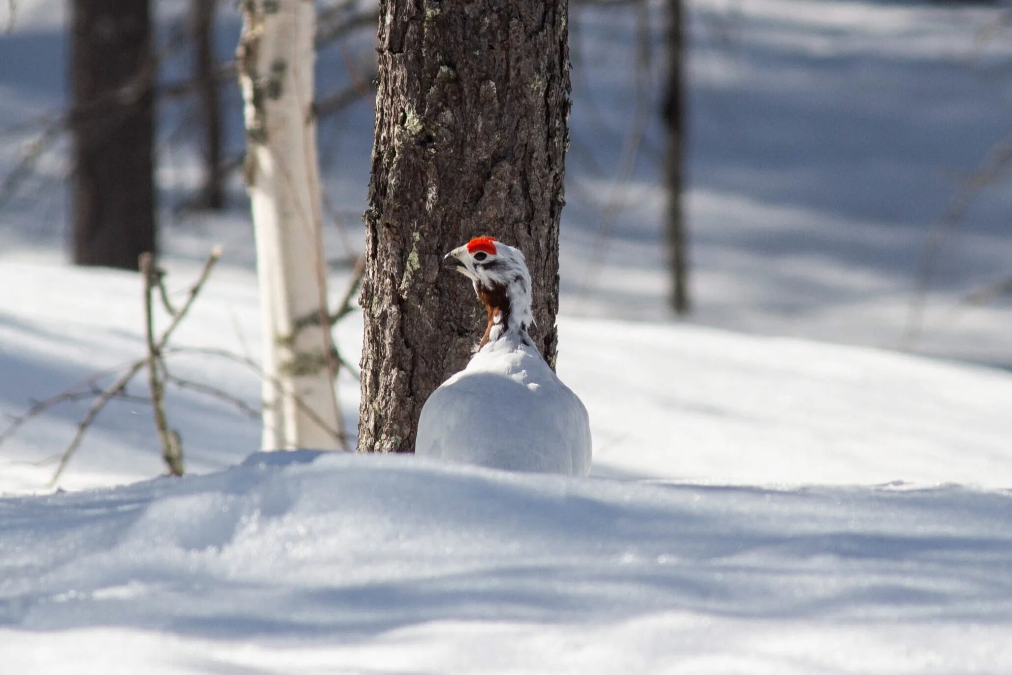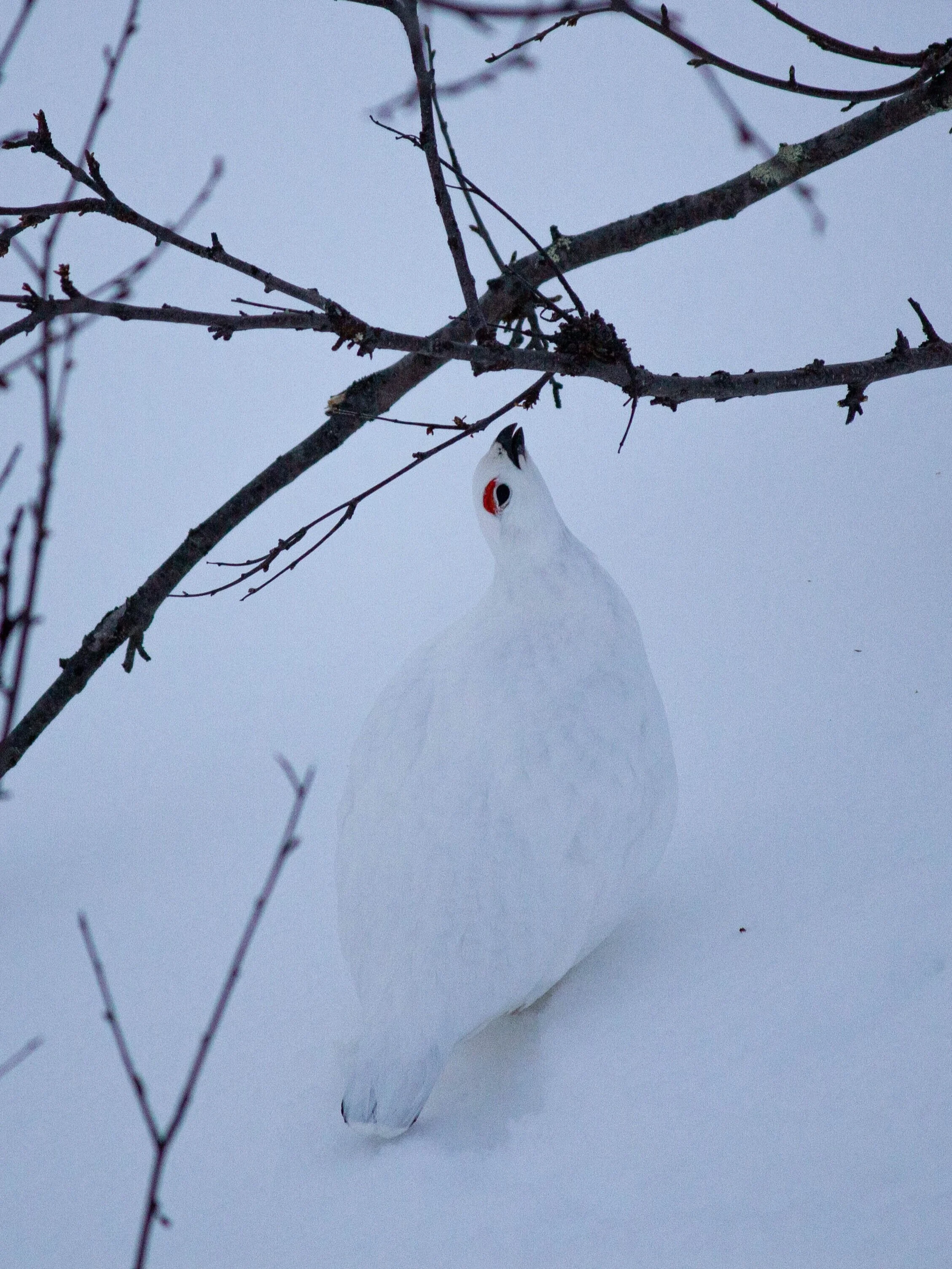 Huhtikuun ensimmäisellä viikolla kuvailin riekkoja ja niiden jälkiä hangessa.