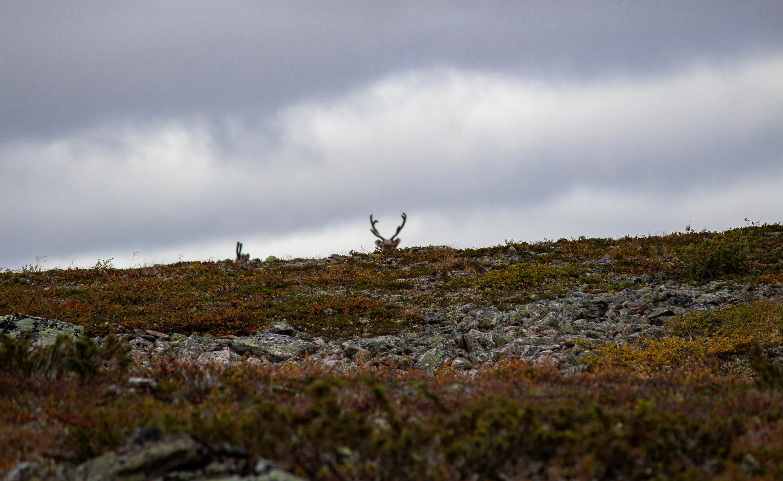 Kävelytahtimme hidastui nyt toisena päivänä huomattavasti, sillä tasaisin väliajoin oli pysähdyttävä katselemaan maisemia, lisäämään tai vähentämään vaatekerroksia tai kuvailemaan poroja. Kuvasin poroja kaukaa pitkällä putkella, sillä porojen rykimäaikaan suositellaan pysyttelemään etäisyyden päässä erityisesti kiimaisista porohirvaista.