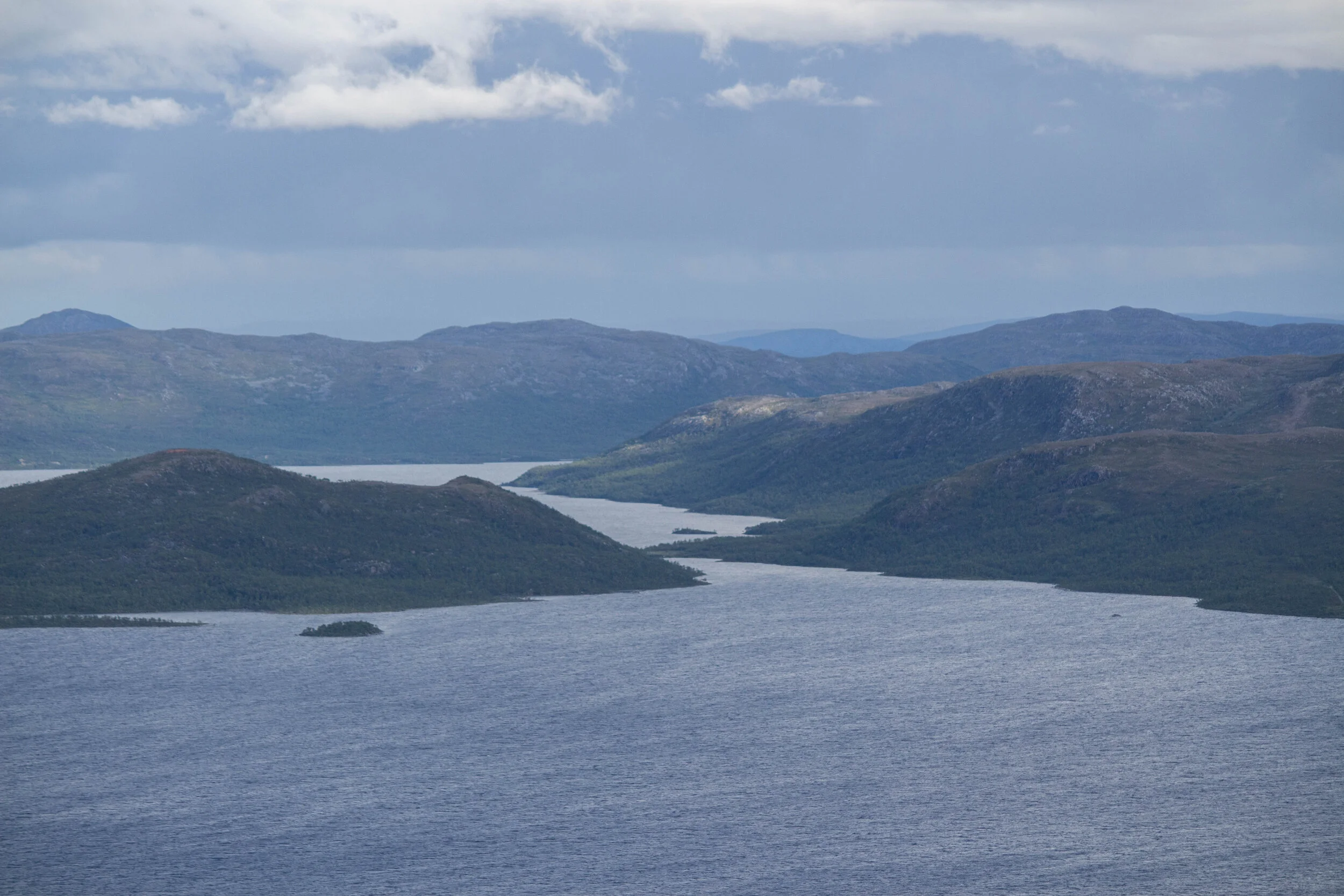 Meillä oli nuoret koirat matkassa, joten retkemme tavoite oli vain kävellä pitkin Guolasjärven rantaa ja nähdä Haltin rakkakivikkoinen siluetti sieltä käsin.