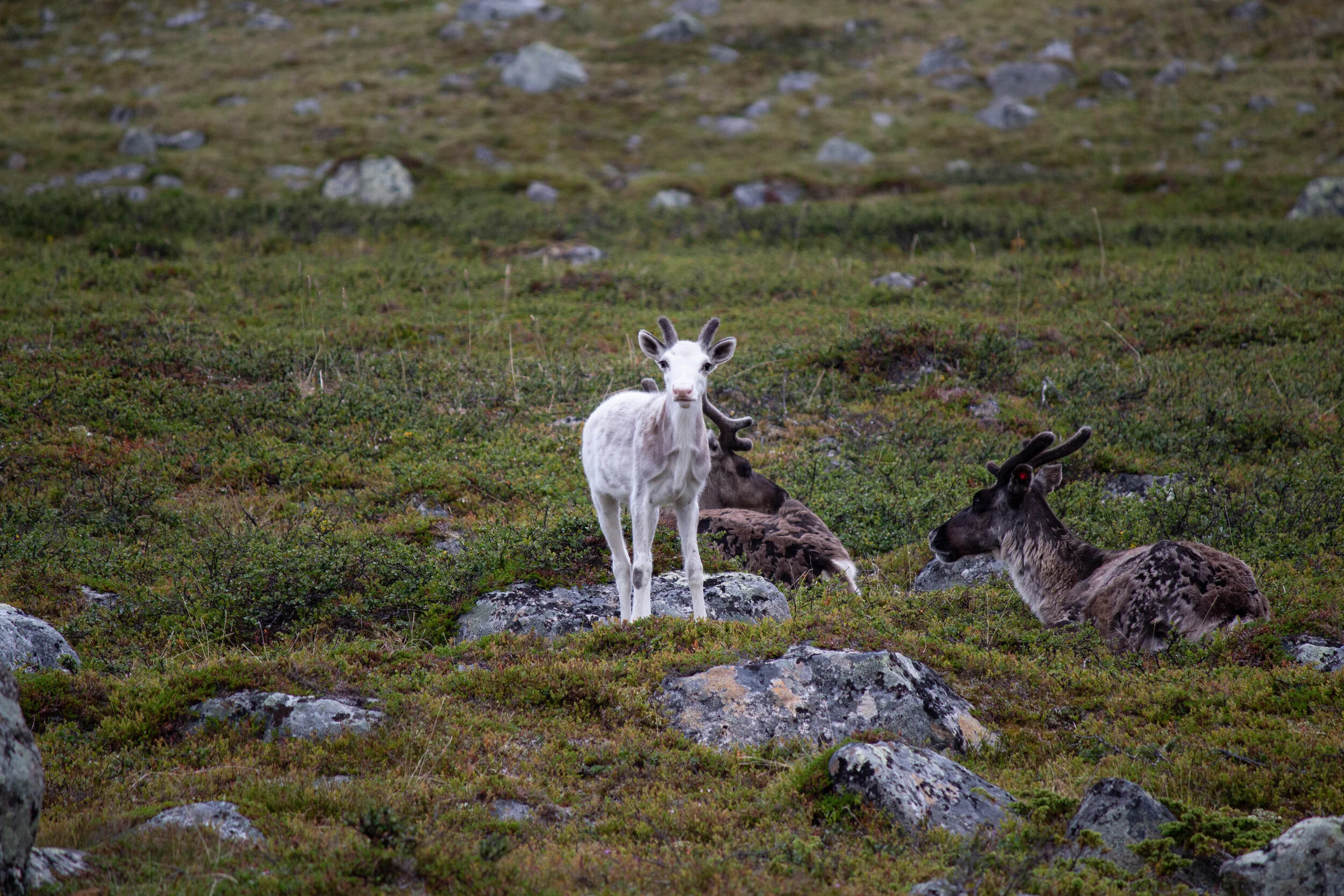 Pikku-Mallan rinteessä oli kokonainen porotokka viettämässä iltaa kun kipusimme ylös huipulle.