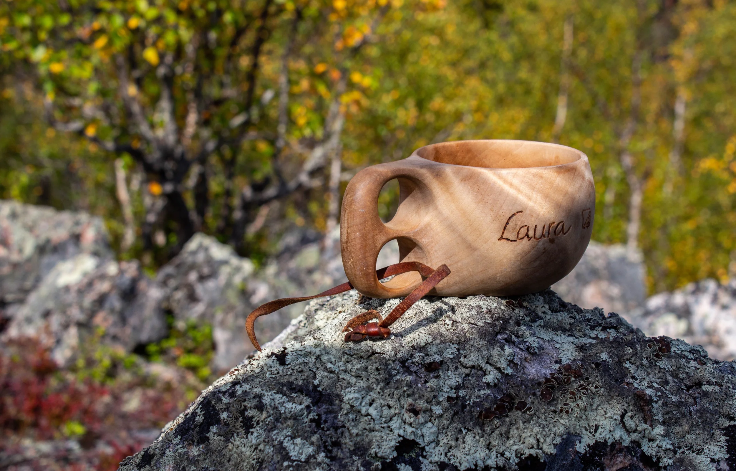 Kuksani, tai ehkä enemmäkin puukuppini, on kulkenut mukanani kaikilla kesän retkillä. Siitä on juotu teetä, kahvia ja kuohuviiniäkin eri juhlahetkien kunniaksi. Tällä retkellä skoolattiin kaakaolla Suomen luonnon päivän kunniaksi.